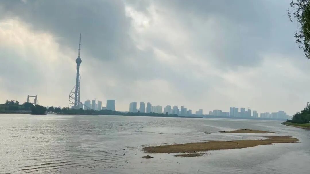 在祊河边住了已有四五年,第一次见如此低的水位。有的地方已经裸露出了河床,河流转弯向南汇入沂河的地方,水中央有一片狭长的沙滩,虽然不是金色沙滩,但形状已然是小时候沭河里沙滩的模样,我们曾涉水步入沙滩挖蛤蜊。