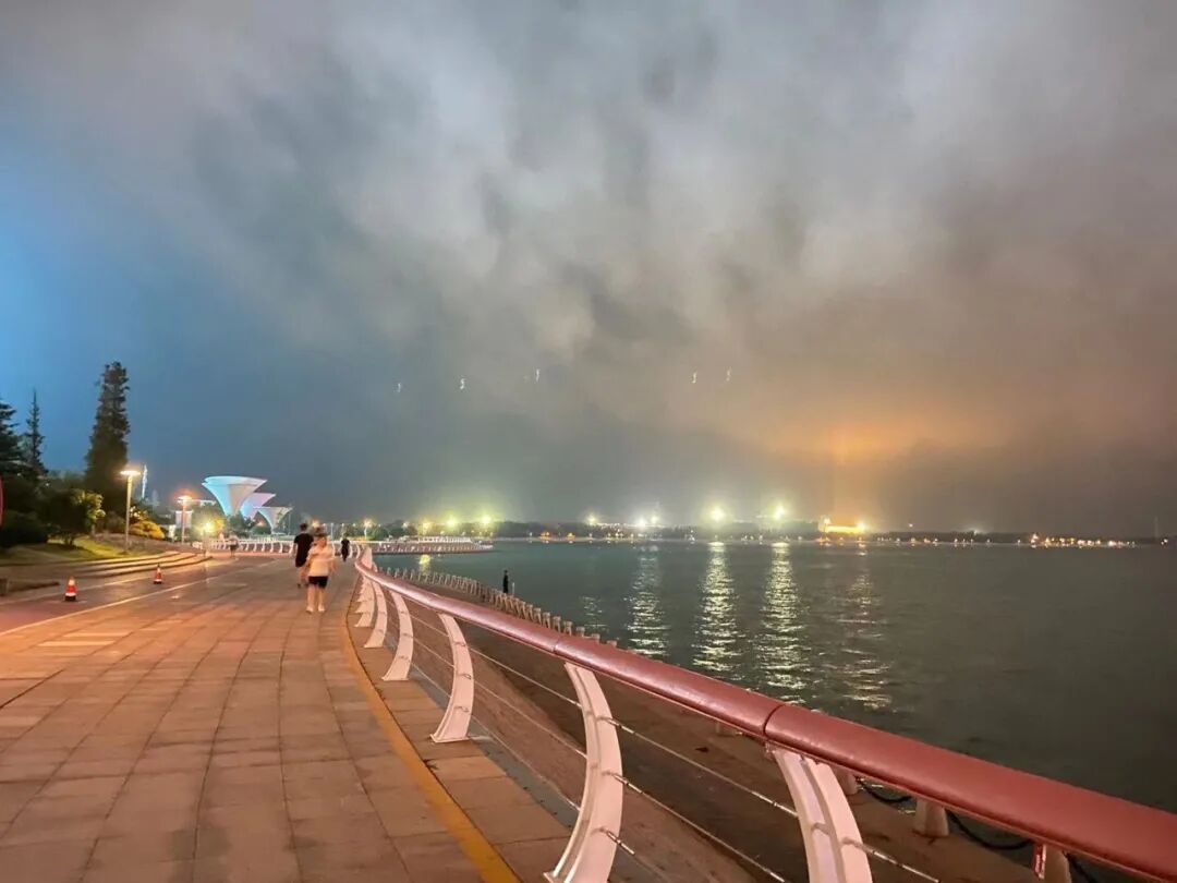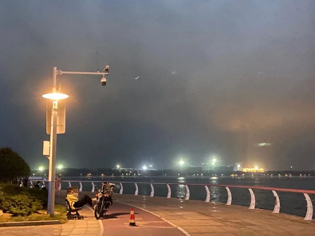夜晚的唐岛湾,骑行的,跑步的,散步的,垂钓的,跳舞的,压腿的,遛狗的,带小孩的,休闲椅上发呆的刷手机的,拍照的,唱歌的,发抖音直播的……跟临沂滨河步行道上的情形,简直一模一样。