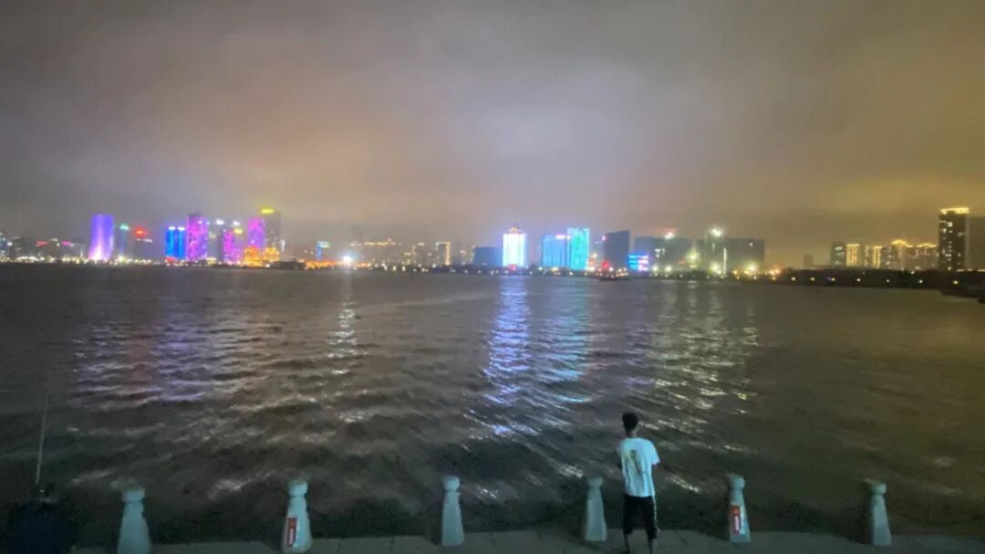 小哥坐在休闲椅上,面朝大海,不,面朝唐岛湾那一湾平静的海水,远处是滨海大道上上演着灯光秀的高层建筑,城市的万家灯火。