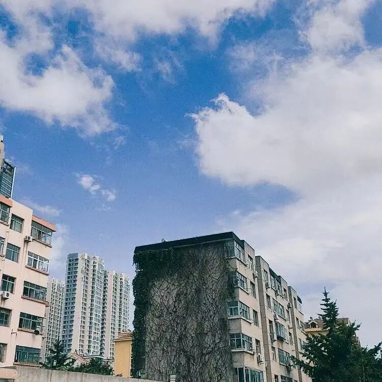 那也是一个雨后的下午,天很蓝,云很白。我之所以记得,是因为拍过那一天的蓝天白云绿墙。