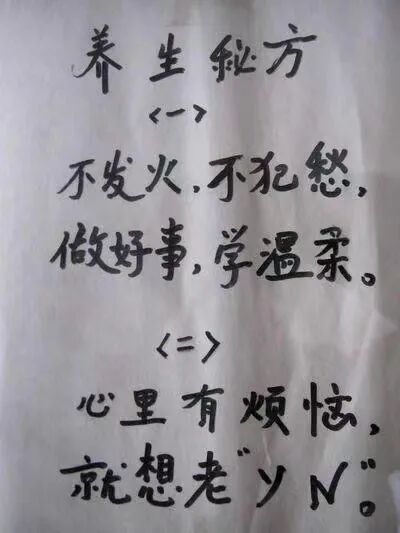 我爸爸曾写过一段顺口溜。称之为“打油诗”也可以。是写给我妈的“养生秘方”,在家里一个旧书橱上贴过好多年,纸张都发黄了,后来打扫卫生就不见了。