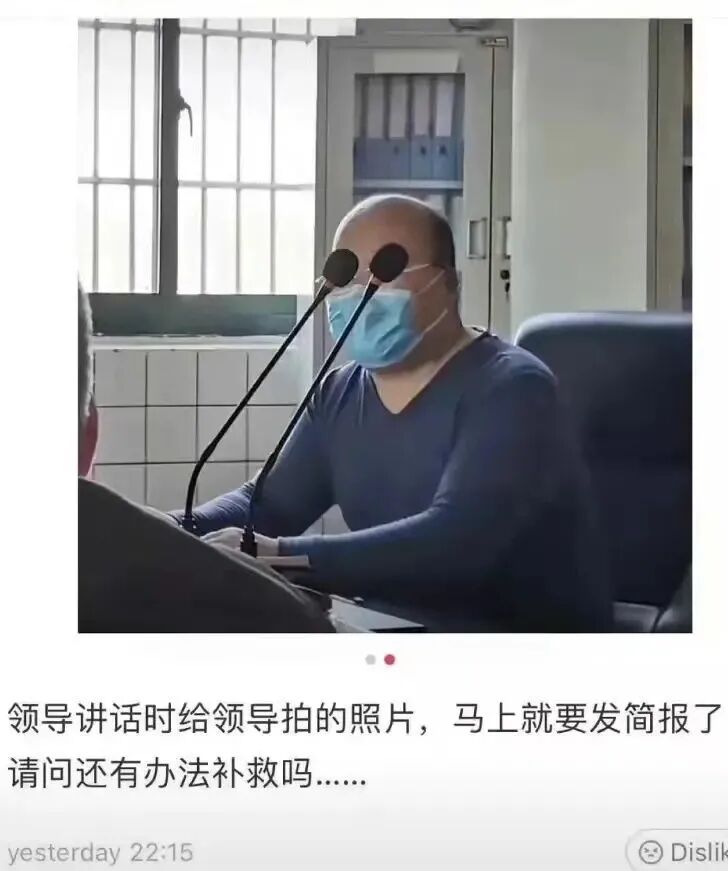 这张领导讲话的照片,显然是没法上简报没法发通讯,没法公开用的。至于能不能请修图高手给PS一下,是另一回事。
