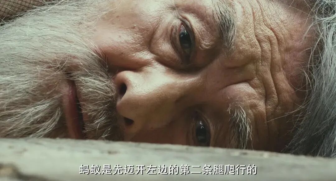还有个镜头,是熊谷守一在看蚂蚁,他告诉学生,“蚂蚁是先迈开左边的第二条腿爬行的”。