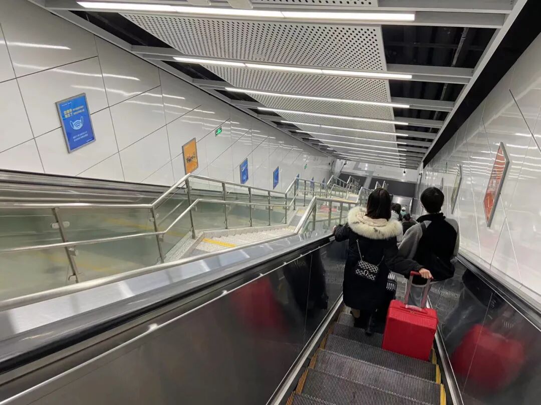 薛家岛站下两层扶梯到站台,感觉不比重庆皇冠大扶梯短啊