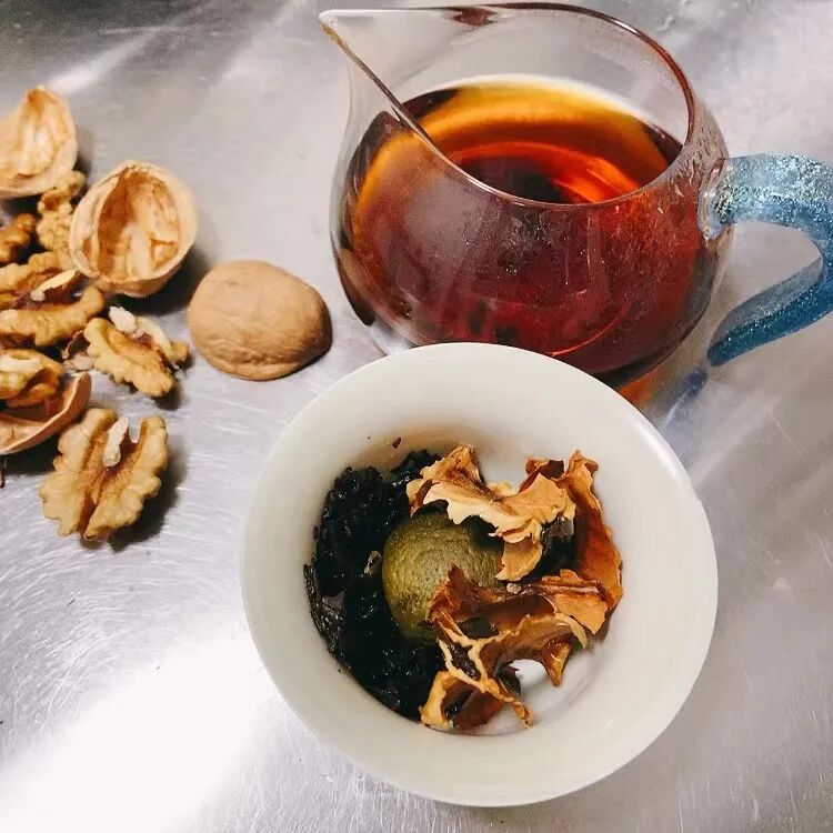 我想起表姨说过,煮茶叶蛋时可以用核桃壳。她生活在新疆,那里出产核桃,她在医院工作多年,说用核桃壳取代茶叶应该是有道理的。我隐约知道核桃中间的隔膜叫“分心木”,好像是一味中药。恰好家里有核桃,就敲了三五颗,只捡分心木加入其中。