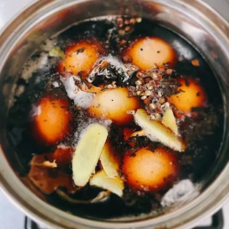 以我对茶类价格的了解,朋友送的小青柑,均价二三十块钱一颗吧。说起来,我也是个很会过日子的人啊。不舍得把茶渣倒掉,又不能喝隔夜茶,灵机一动,煮茶蛋吧。