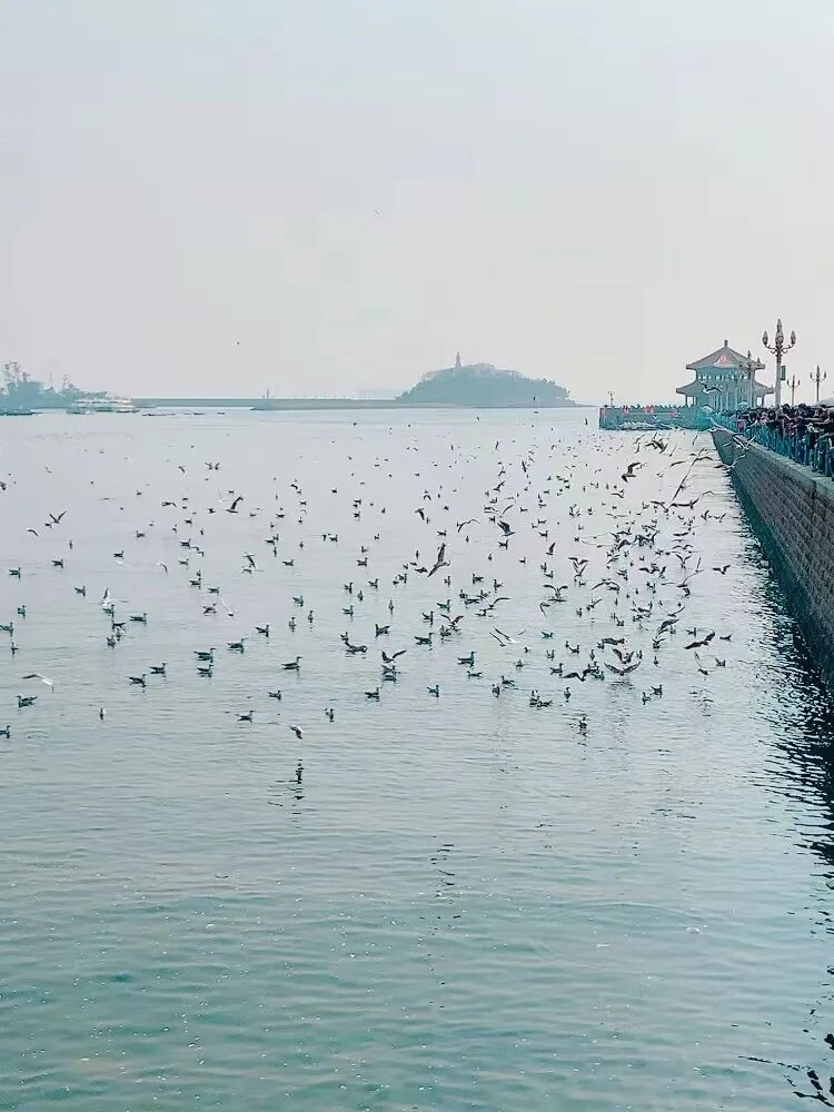喂鸽子,喂海鸥,应该是很治愈的一件事。朋友说:哎呀,我们也实现的看海鸥自由啊。