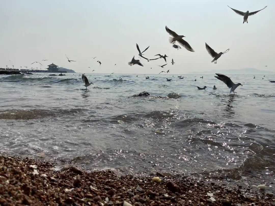 谁知道呢,谁能数得清太平路上,海边沙滩上,栈桥上有多少游人?谁又能数得清在海面上掠来掠去的海鸥,停歇在海水中的海鸥,俯冲到游客手上轻轻巧巧叼走食物的海鸥有多少?