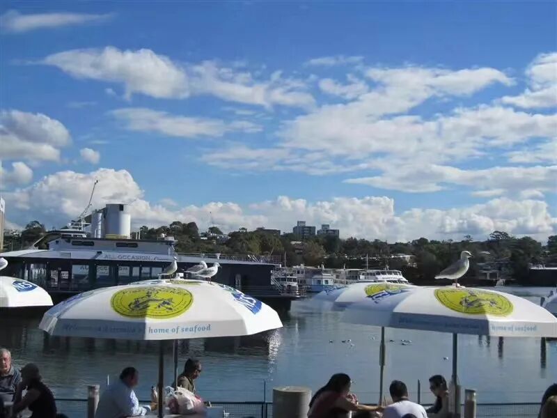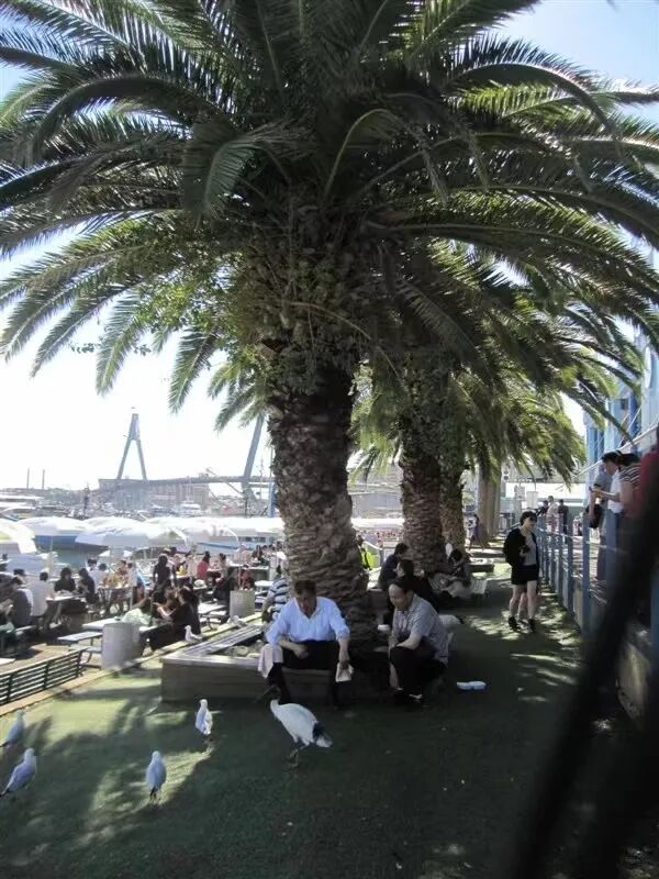 我第一次见海鸥跟人和谐共处,是在澳大利亚的一个鱼市场,离著名的悉尼歌剧院很近。鱼市场外是露天咖啡馆,餐馆。海鸥们肆意地停在太阳伞上,溜达到游客脚边,有的甚至大胆地飞到餐桌上,争抢客人餐盘里的食物……