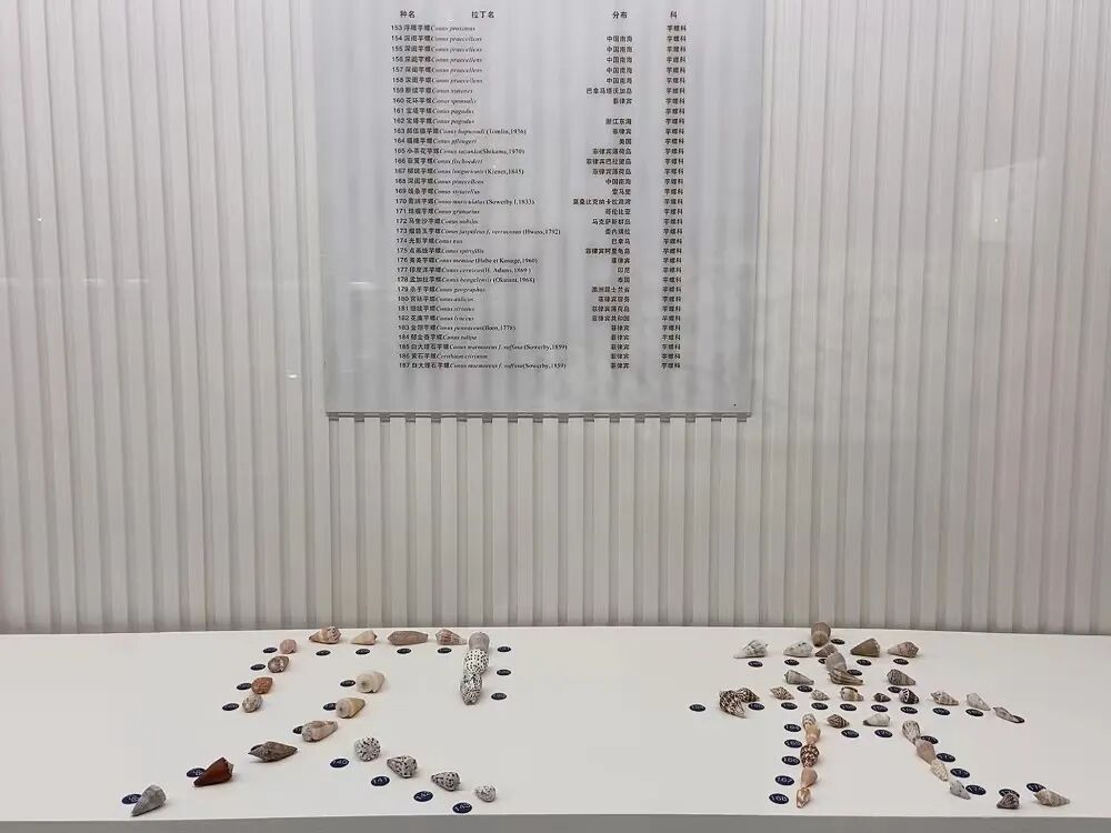 进馆后扫二维码即可听“云讲解”。每个展厅,沿墙壁是一个个展窗,中间有两个中岛,每个贝壳都有编号,每个贝壳都有属科有名字。