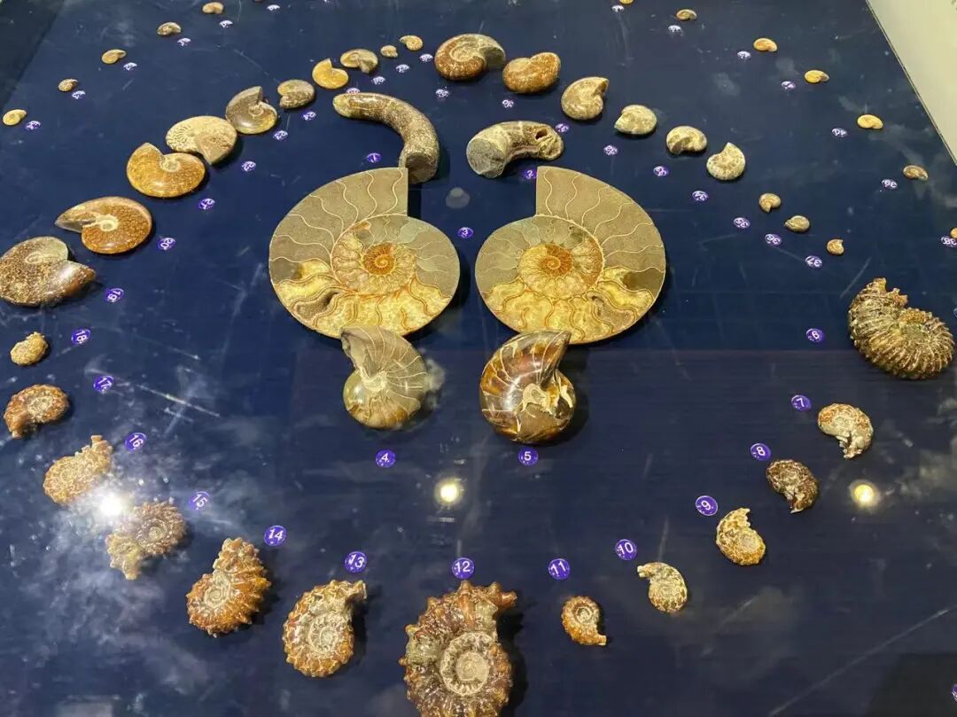每到一个展厅,我们就随讲解去对照展窗里的贝壳。