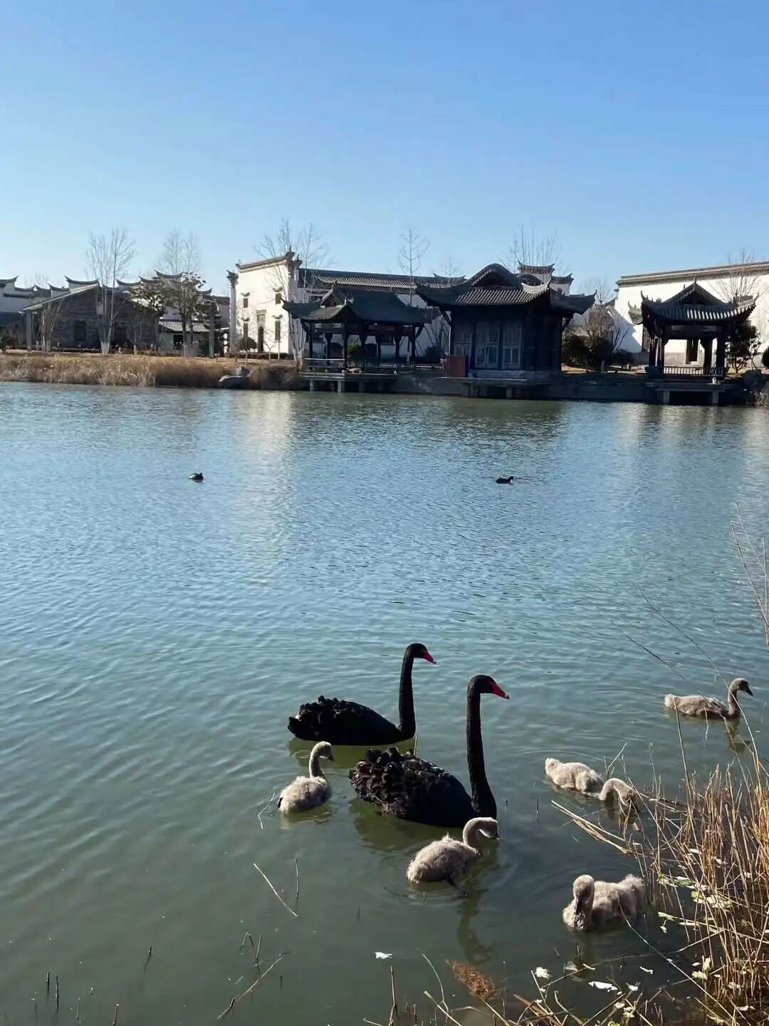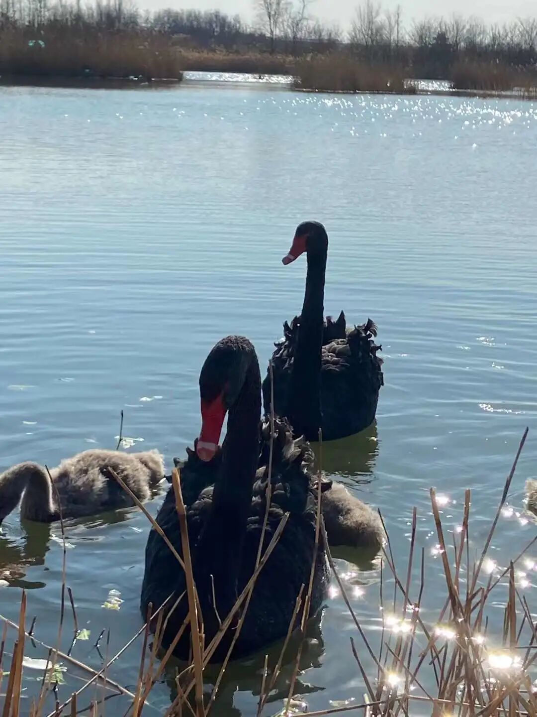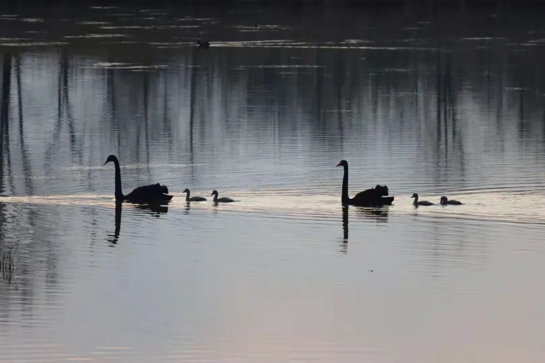 但是,当看到一只黑天鹅优雅地游出芦苇荡,离我们越来越近;当一名身穿景区黄色工装的工作人员像唤家禽一样呼唤着“鹅鹅鹅”,向水中抛洒白菜叶;当岸边守候着跟拍天鹅的摄影师说,它是在寻找家人;当看到天鹅一家陆陆续续游过来,越来越近,近在咫尺……