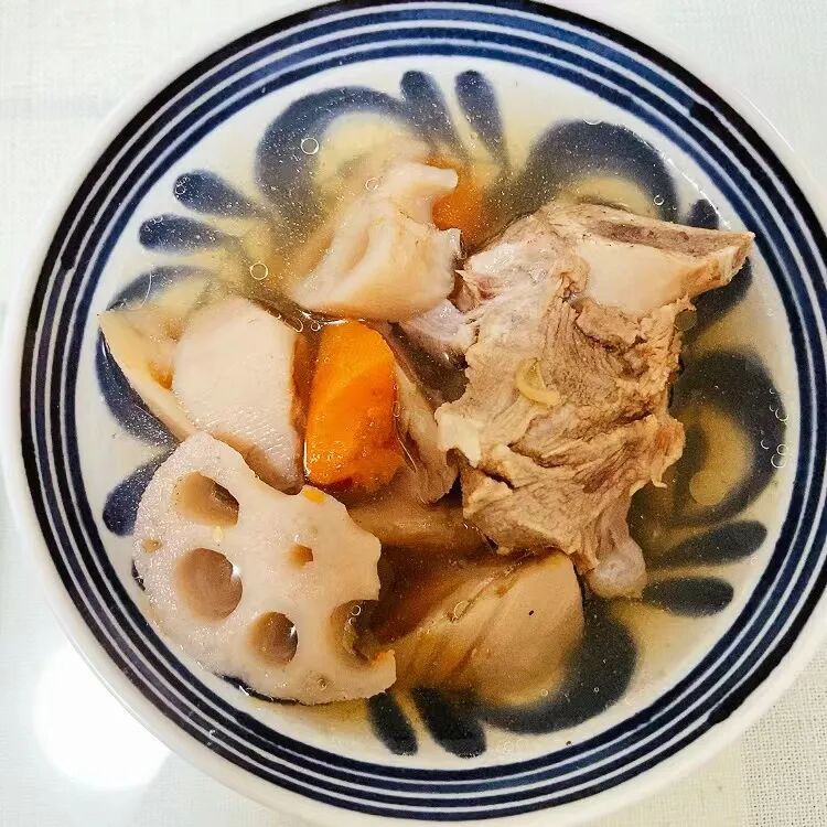 我就用扇子骨或棒骨或腿骨,用不知哪个湖哪片水域里的莲藕,用电压力锅或铸铁锅,用电磁炉或天然气……也是一样一样的啊。