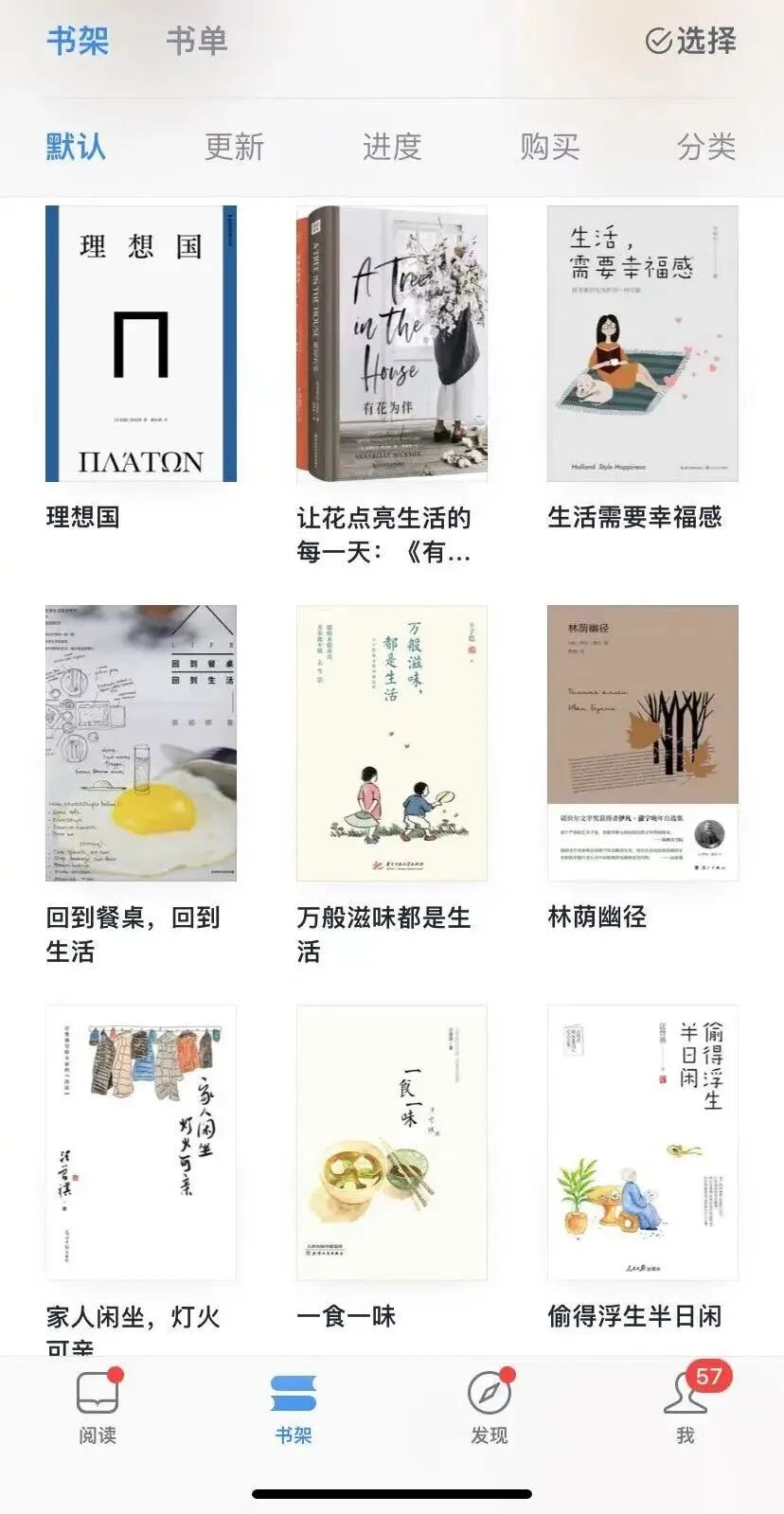 微信读书会根据阅读者的选书匹配相关书籍进行推荐。我太贪心了,一口气已经把三四十本书放入了书架。