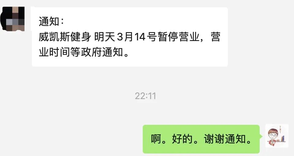 码字到这里,经常去游泳的健身中心工作人员发来通知。