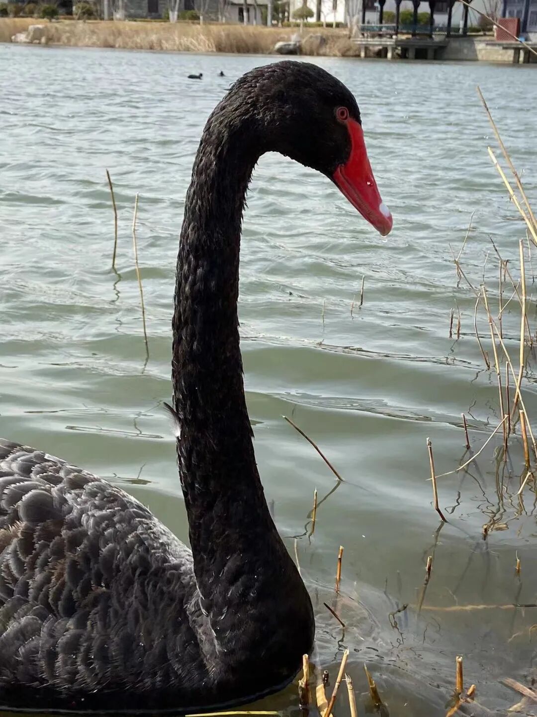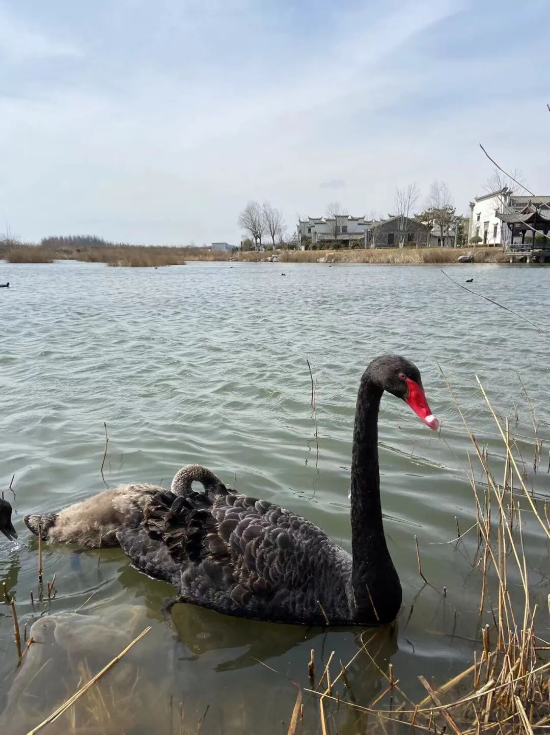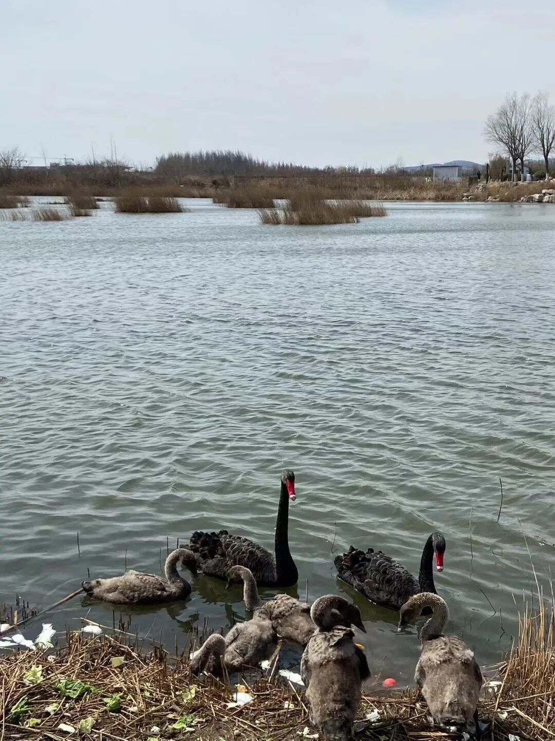 路过家门不入,又绕道唐岛湾南岸去看了黑天鹅一家。