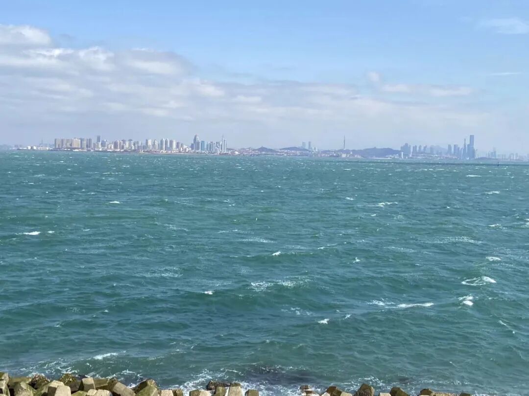 难怪我在海滨木栈道迎风站立,看到海对面的楼房建筑,如此近距离,着实有点吃惊。以前在东环岛涵碧楼一带,也这样隔海相望过市区。今天才知道,西海岸距青岛市区最近之所,原来是维多利亚湾。