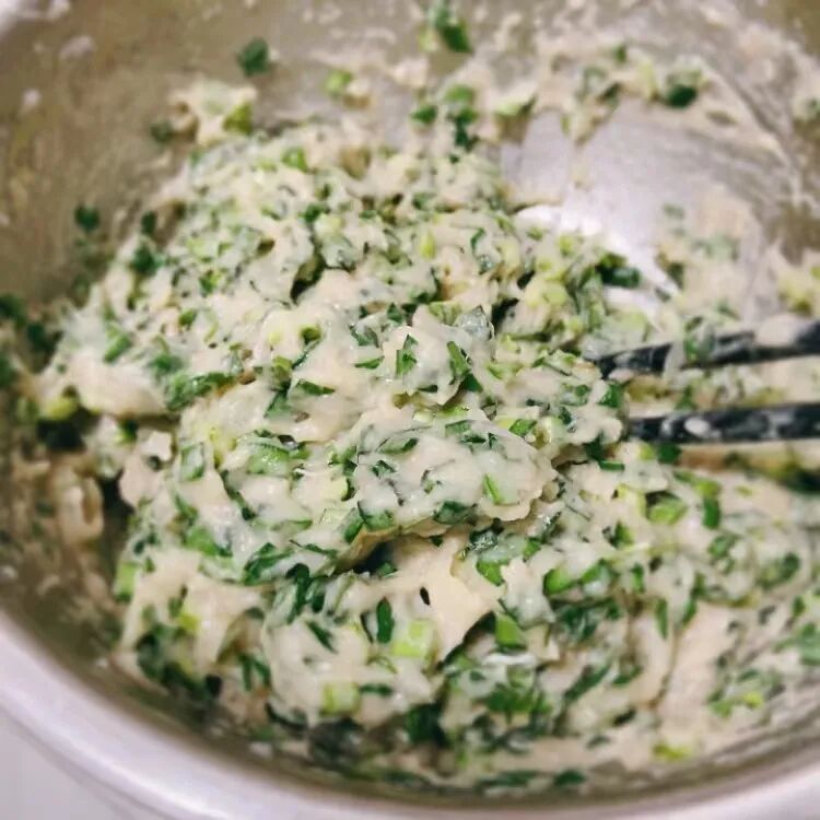 结果,可能是一次加水太多,不是分次加水搅打,也可能是加水太多,又没有加五花肉馅调和,那次的鲅鱼馅太稀,好不容易才包进面皮里。