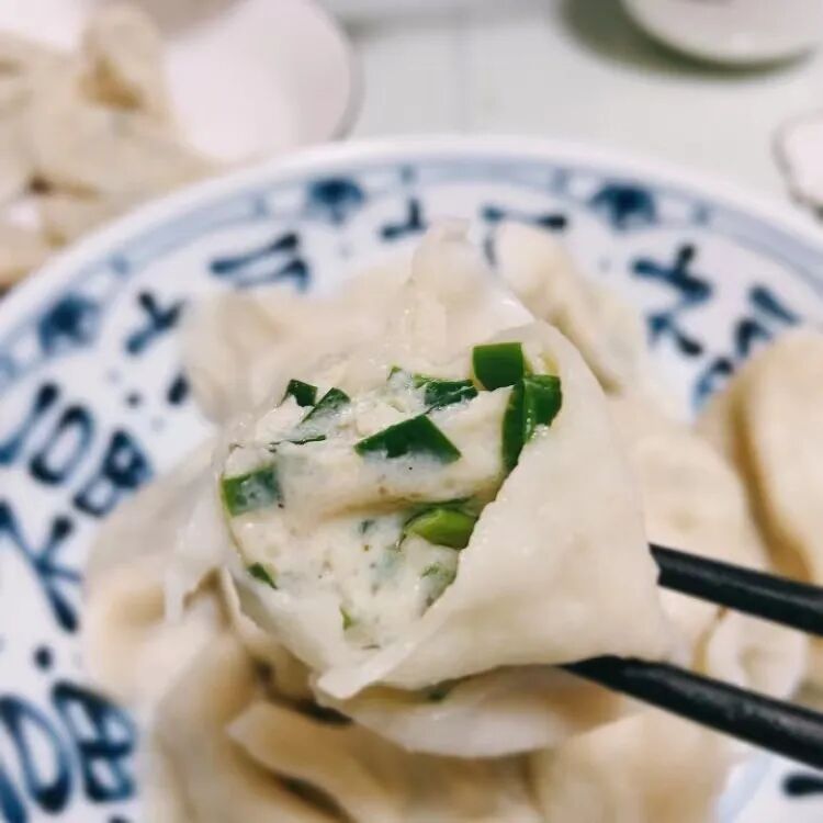 这次,虽然也没有五花肉,用的纯鲅鱼肉加韭菜调馅,但,味道还是很不错的。