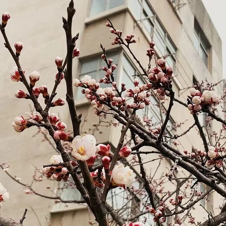 乍暖还寒。青岛还没停暖气,一早一晚出门还得穿羽绒服。我猜杏花一定能敏感天气的变化,不然,怎么还没盛开就落了一地?又想到,人家是要结果子的,当然优胜劣汰。