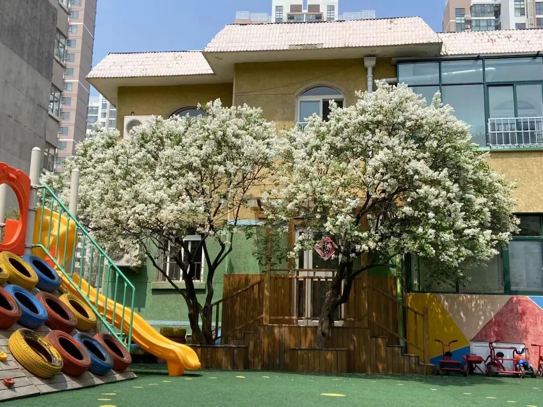 那几棵白丁香显然已经有了年岁。它们应该见证了一代代的小孩,在这个园子里奔跑嬉戏。数算一下,这个幼儿园毕业的最大的孩子,应该已过了而立之年。