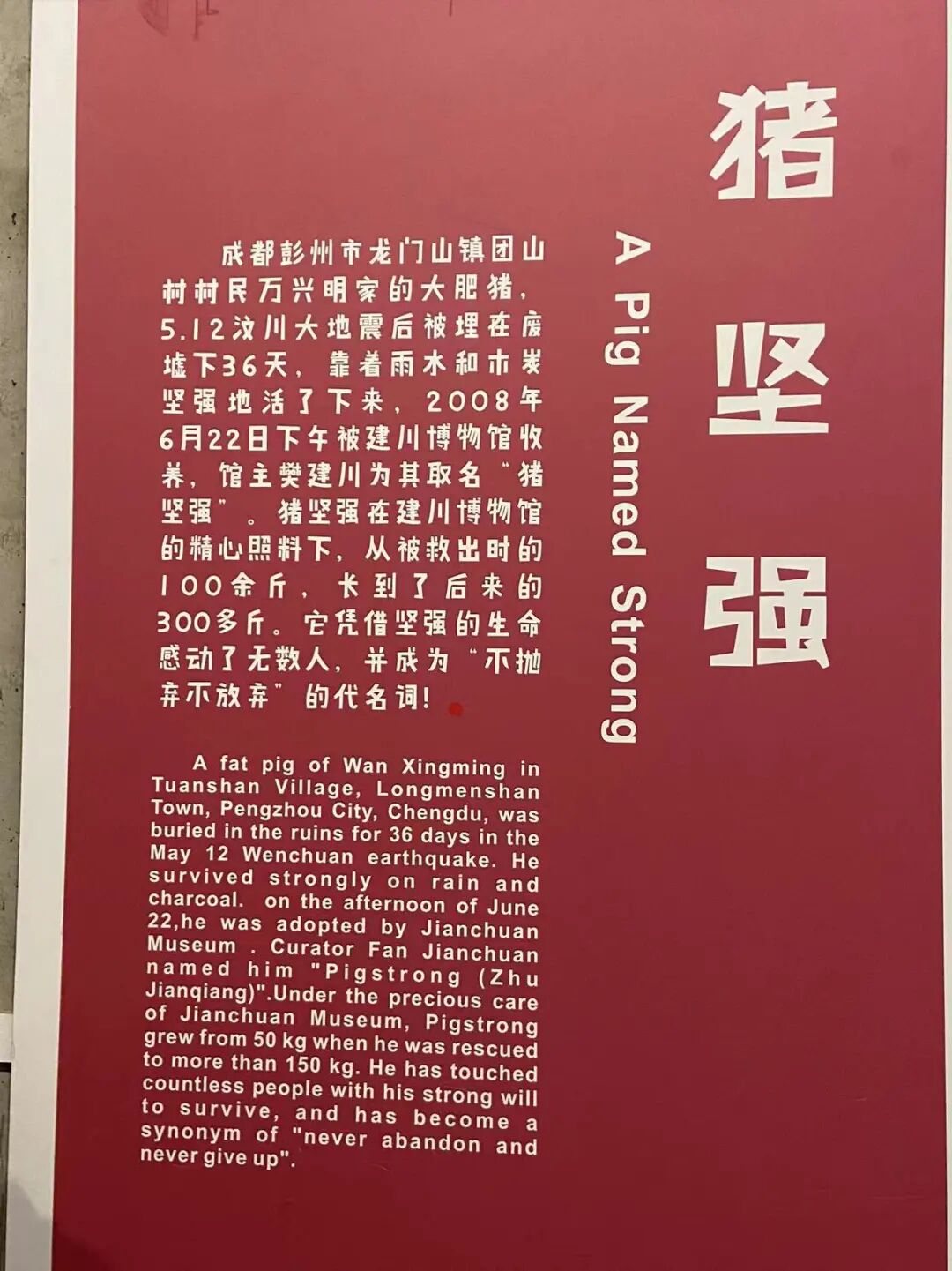 我也不记得博物馆门票价几何,总之是收费的。印象最深的,是抗战老兵手印广场,红色年代纪念馆,512汶川地震纪念馆,猪坚强。