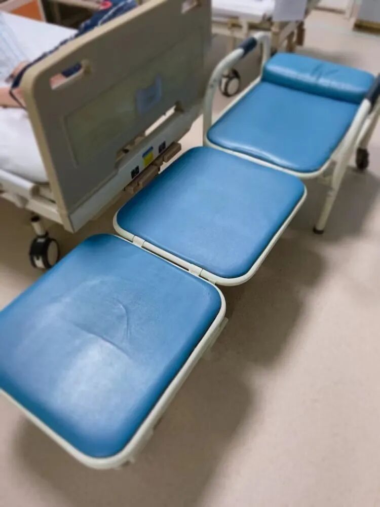 前年我妈住院时,我和妹妹轮流陪护。我白天,她晚上,偶尔我也晚上陪护,当时是自带的折叠床,好像就是在医院小卖店买的,看上去就很不扎实,窄窄的,晚上都不敢翻身,唯恐把那小床压塌。