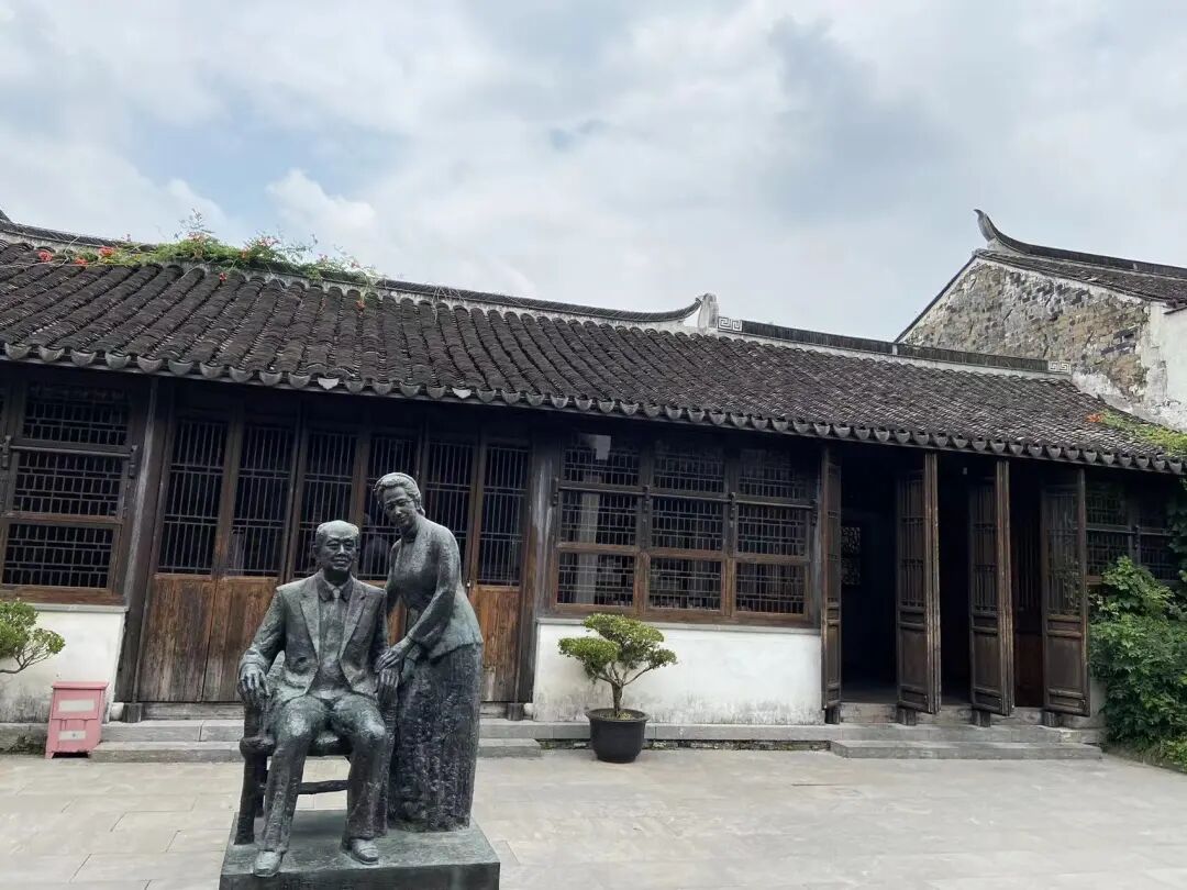 在常州周有光故居,入口右侧墙壁有张丁聪画的漫画,画的正是周有光、张允和夫妇。