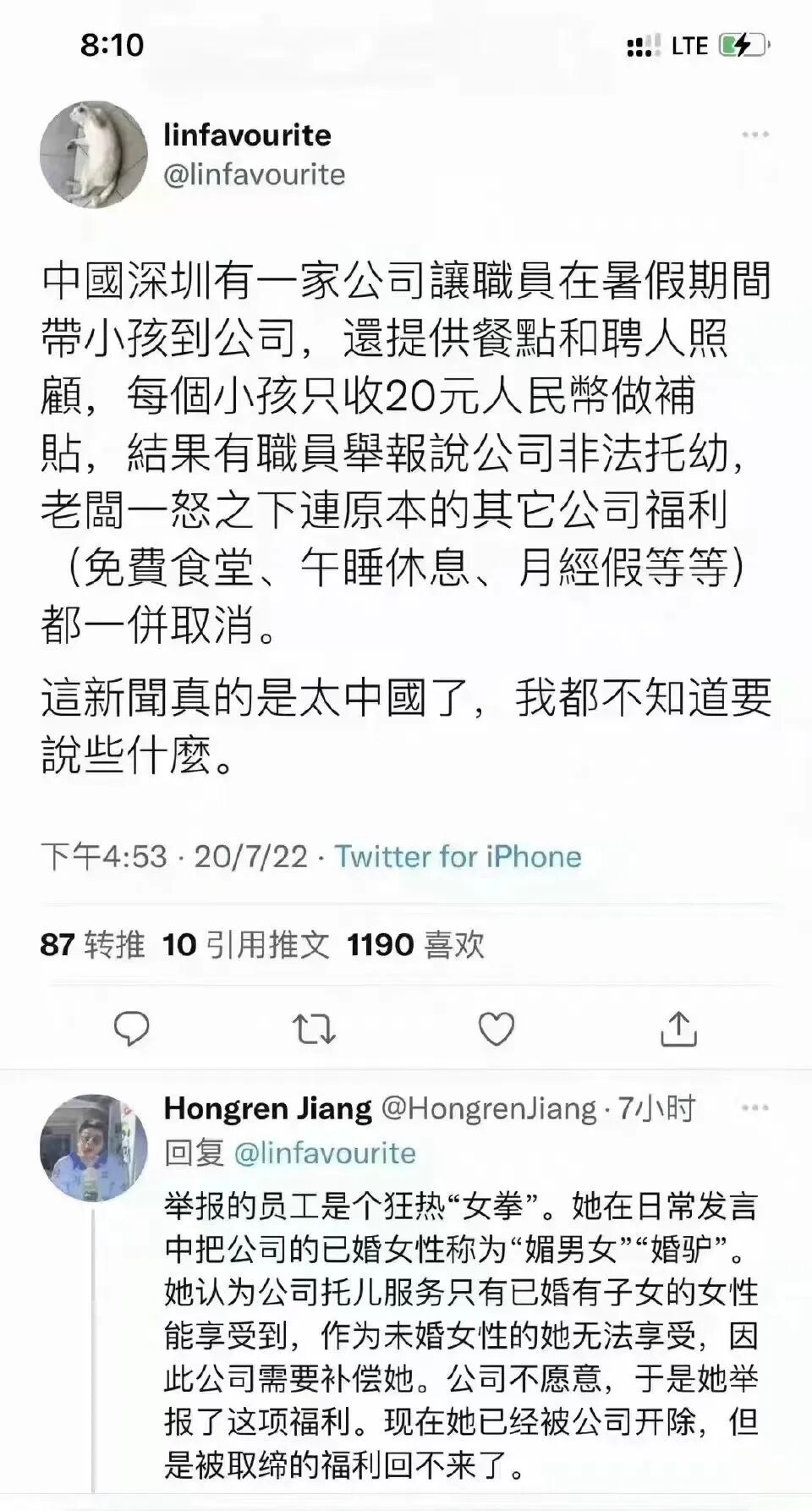 可是,没想到有未婚女员工心理不平衡,举报公司违法托幼。结果老板火了,一气之下索性把各种员工福利都取消了。