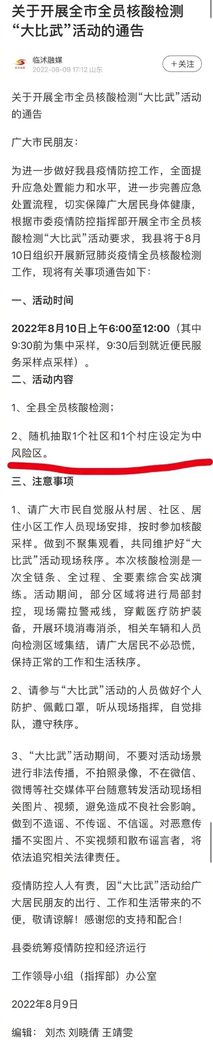 临沭以这种方式上热搜,可能有点冤大种,毕竟是响应市委疫情防控指挥部的要求。