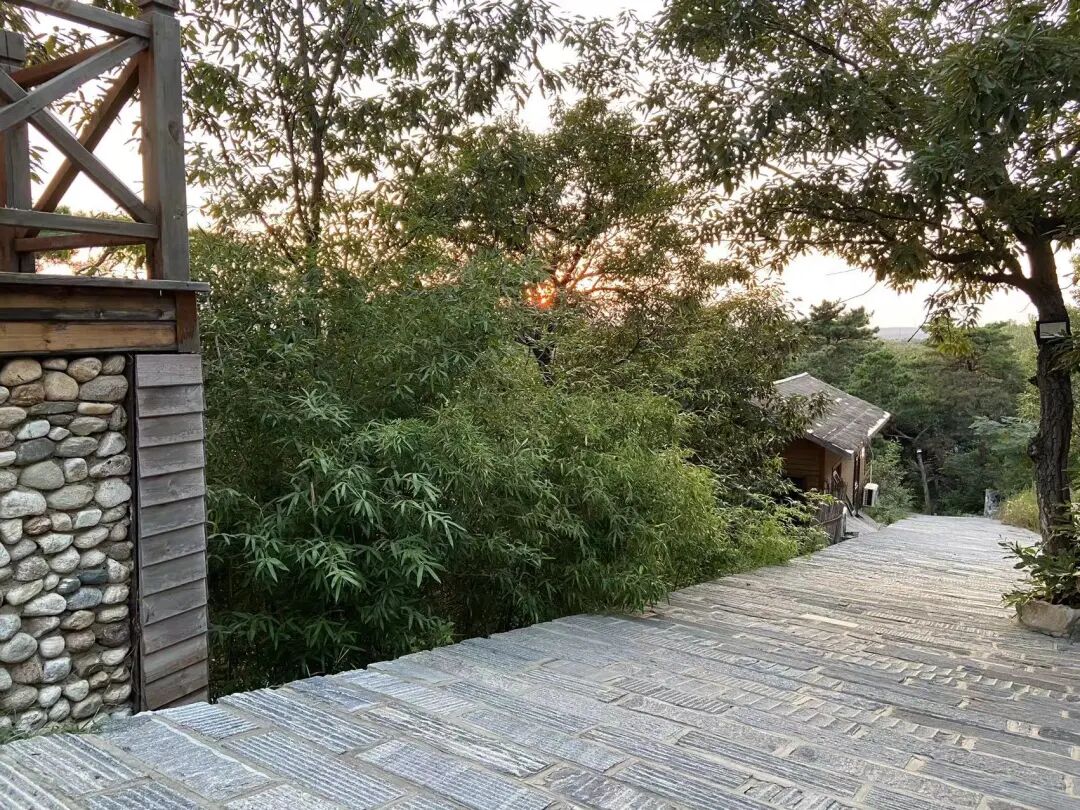 其实是在蒙山脚下的康谷温泉。昨天我俩步行到山下的检票口,路过沂蒙人家,想起以前曾在那里住过,参加过前公司的蒙山会议。我还去当年住过的小院凭吊了一番,想起在那屋子里曾经有过怎样无眠的一夜。