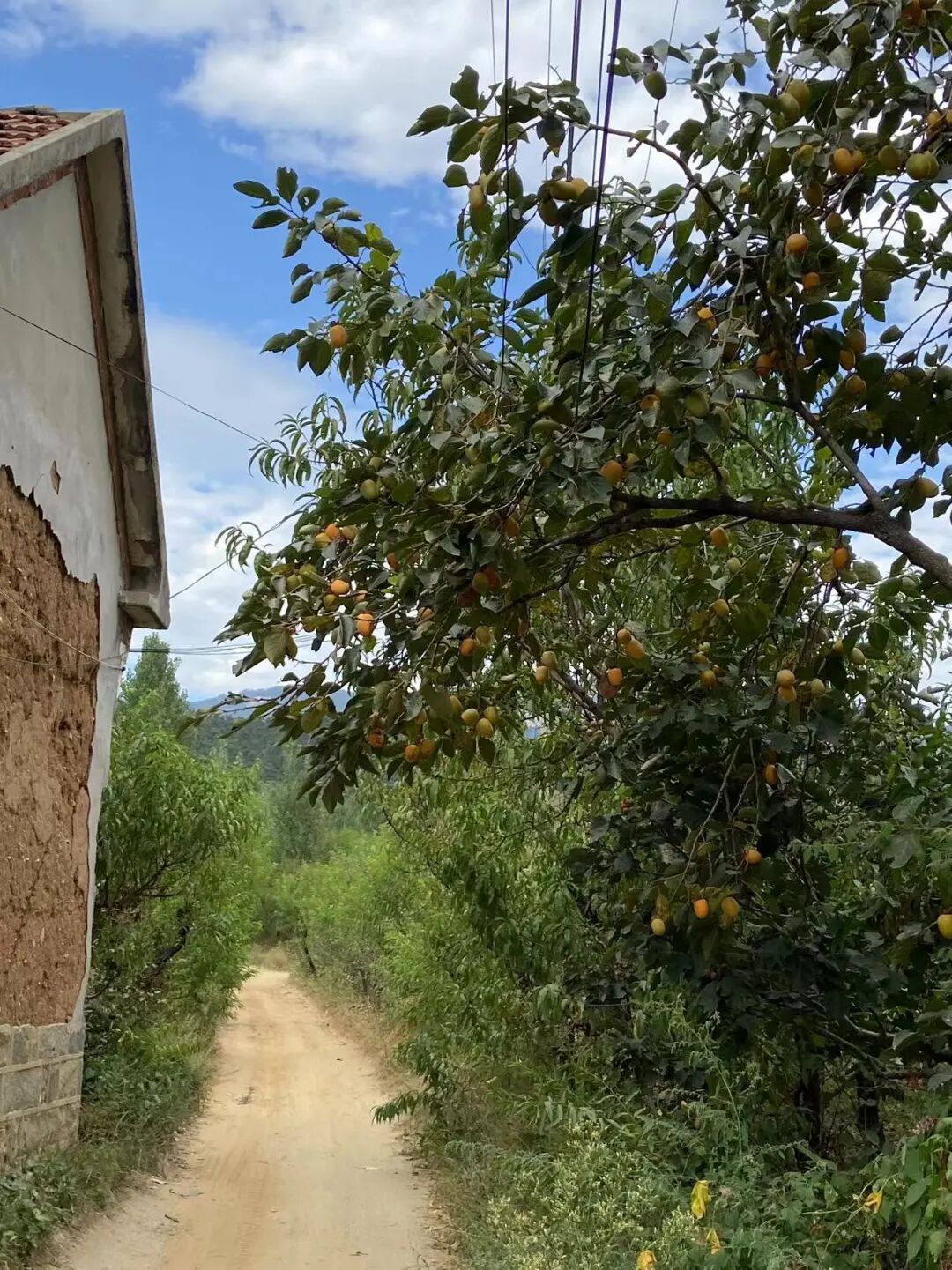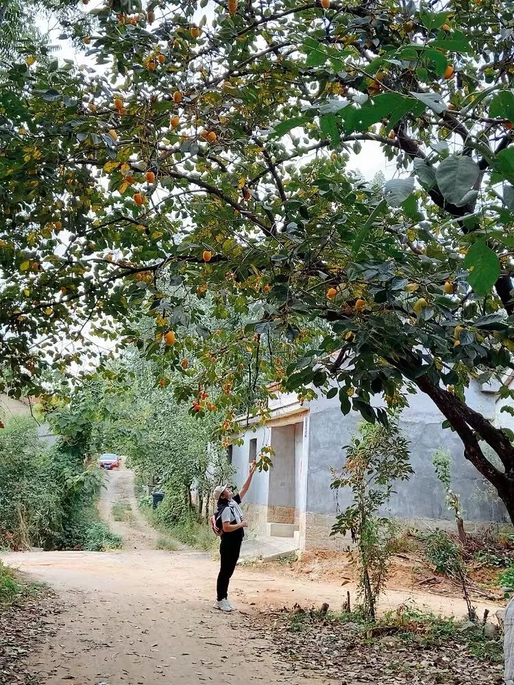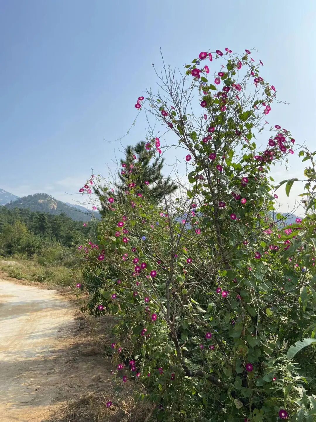 走走停停,一路被一树火红的柿子,被不知名的果子,被一树的喇叭花……吸引。走在乡间的小道上,迎面碰到一个人开农用三轮车过来,停下让路,那人却报以热情的笑容,冲我妹妹道:你还认识我不?不认得了?