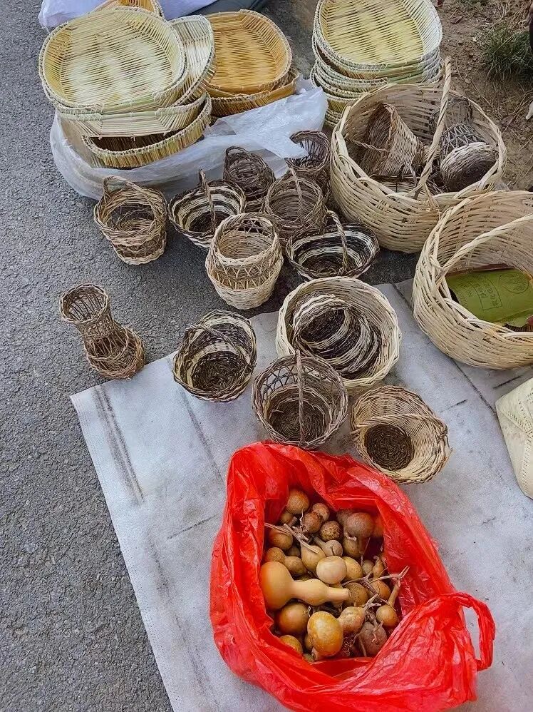 我们每天必经过那几个摊位去餐厅用餐,去泡温泉,我还跟其中一个摊主买过苹果,新鲜的花生,还跟一个老人买过草编的小箩筐。