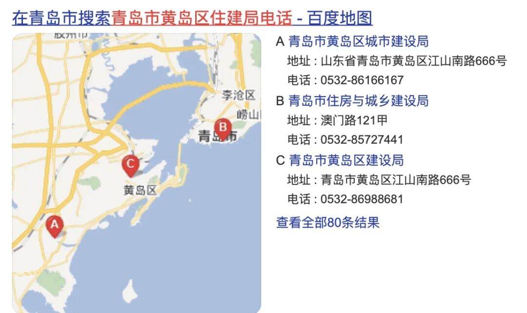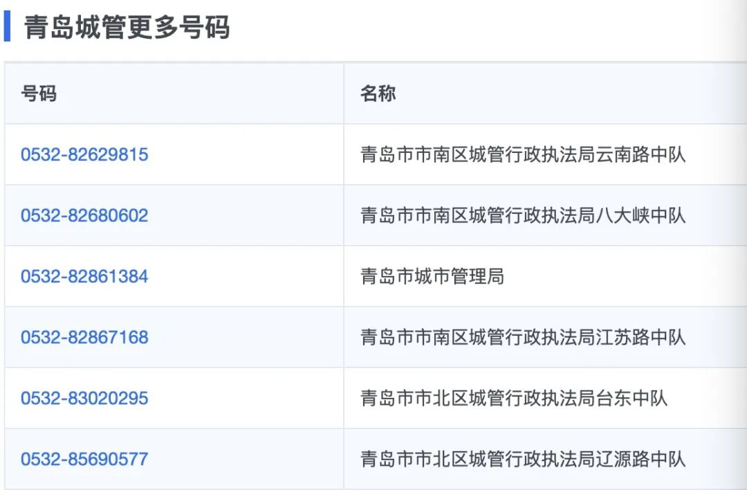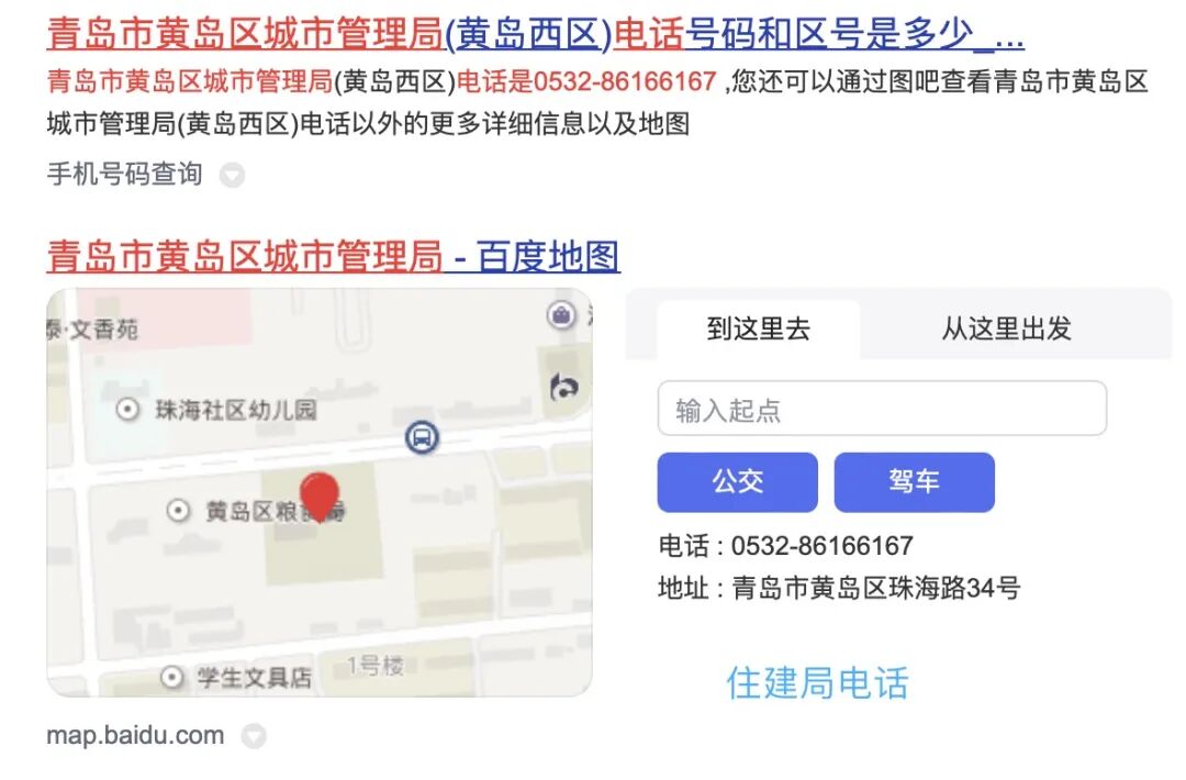 按我理解的组织架构,每一个市级单位都有对应的区级下属单位。没查到西海岸园林局电话,我就打了青岛市的,接电话的工作人员告诉我这事不归园林局管,让我找西海岸自然资源管理局,并给了我一个电话号码。(后来又打了一轮电话,才知道西海岸没有园林局这一级单位。)