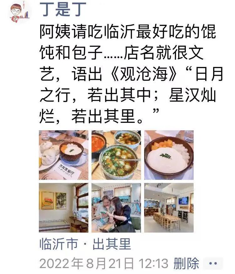暑假快结束时,在临沂,朋友十一娘俩请我们娘俩去出其里吃馄饨。驱车去罗庄,往返四十多公里。