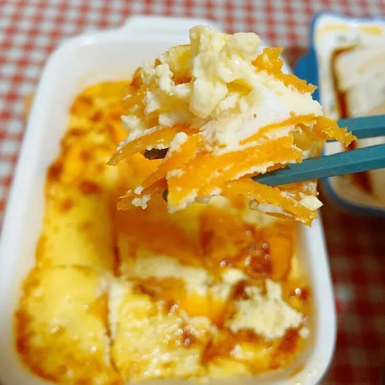 4,烤到蛋奶液凝固、红薯熟透(用筷子插一下拔出来无蛋液),就OK。