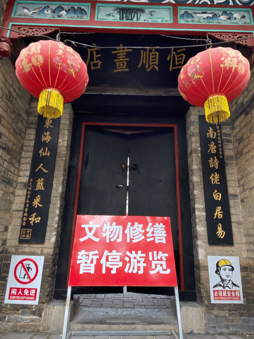 目前的杨家埠非常冷清。看上去虽不至难以为继百兴待废,但古店铺一条街人去街空,景区内除了年画馆、风筝馆尚有工作人员值守经营,所余摊点无一营业。期间去了趟景区洗手间,显然也无保洁打扫,打开水龙头洗手,滴水也无。