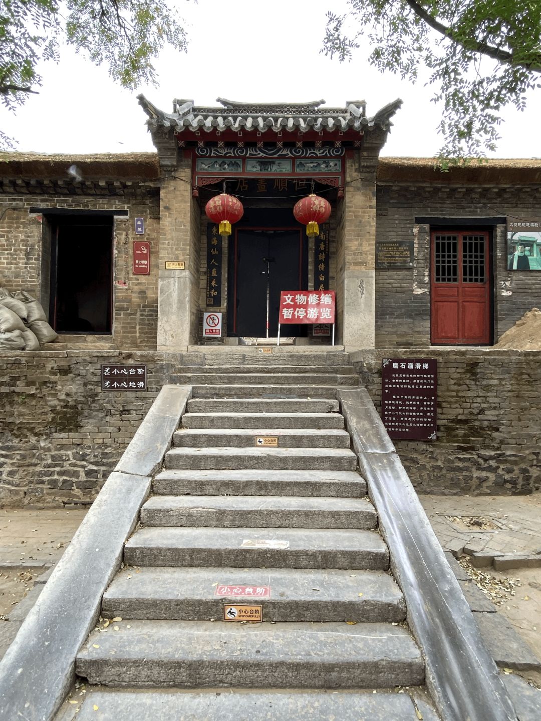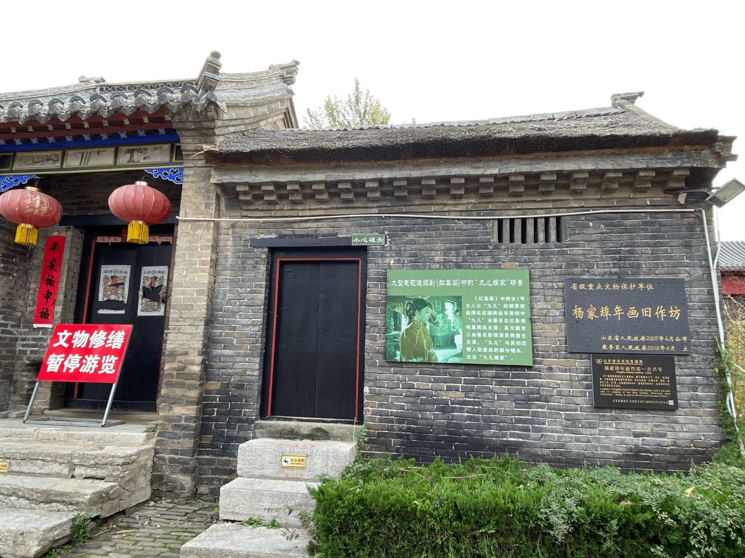 大观园内,有几处明清建筑正在修缮,其中有栋老房子,是电视剧版《红高粱》拍摄地。房子外墙挂有剧照,说明周迅、黄轩曾来过这里,拍摄了某个镜头。房子建得比较高,需要沿拾级而上,台阶两侧的条石显然历史悠久,可以想见,曾有多少孩童在那里滑下来。
