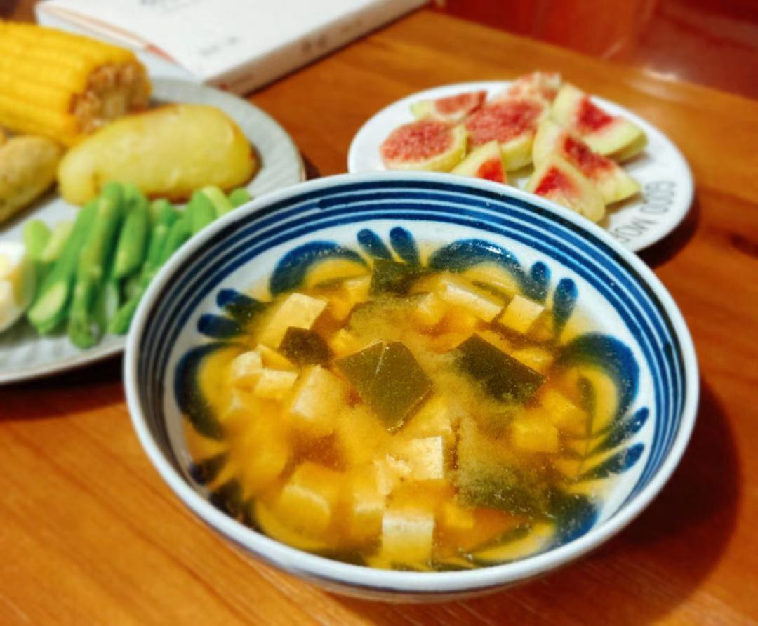 以前觉得紫菜汤最简单,味噌汤也很简单,且营养也丰富,至少蛋白质比紫菜汤高出许多。