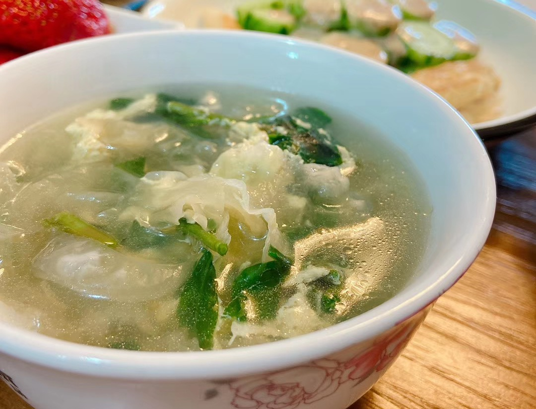 我煮的汤,没有芹菜末,也觉得点缀点青菜叶、小葱碎或芫荽叶,会更好看一点。所谓秀色可餐。