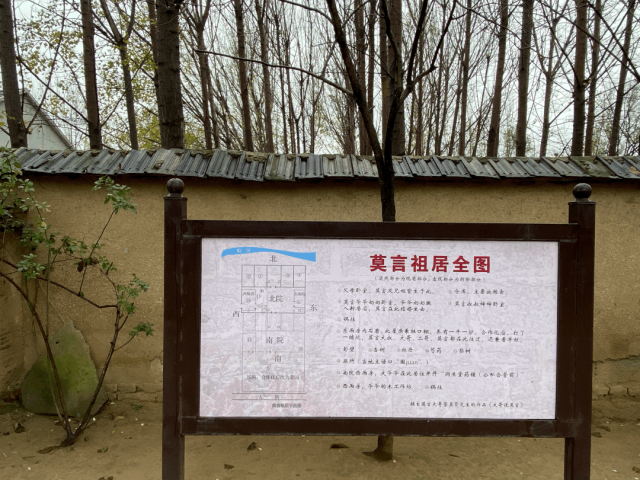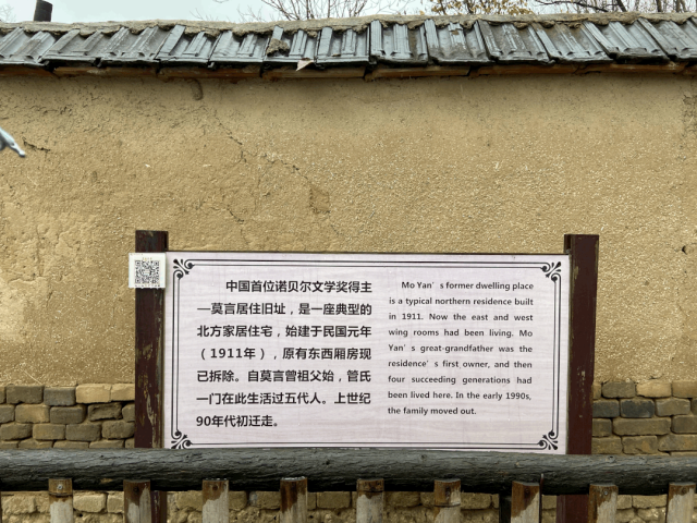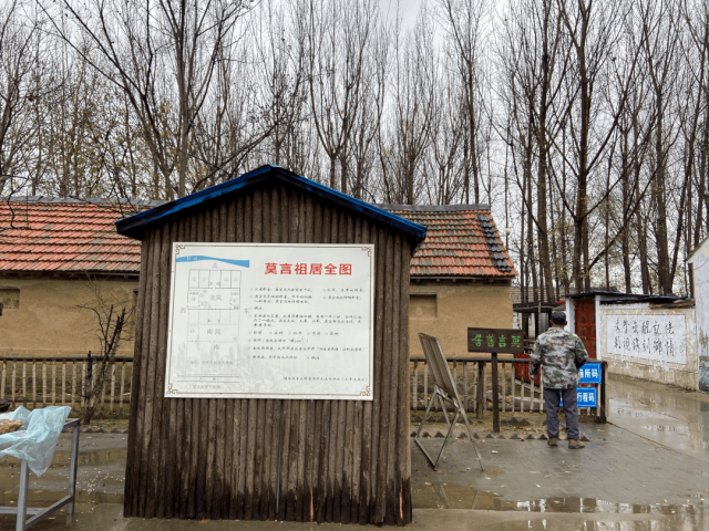莫言旧居不用门票。有管理人员值守,扫码即可进入参观。近旧居,就听到有个穿迷彩服上衣的人在大声嚷嚷,像是在跟谁吵架,又不见他吵架的对象,也许是个醉酒之人,在自说自话,在说着周围人都熟悉的车轱辘话。