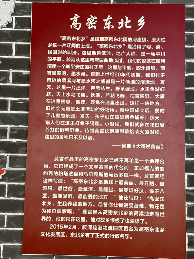回来以后,才知道高密市里还有个类似教学楼规模的莫言文学馆。居然,我在地图上搜周边都没查到。下次有机会,再去拜访。