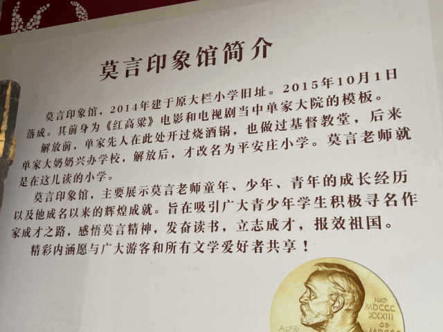 莫言小学已经没有小学生了,是莫言曾经读过小学的学校,修旧如旧,改造成了莫言印象馆。展示莫言从小到大的成长历程,以及取得的文学成就。熟悉莫言作品的人,会在印象馆里加深印象,读到熟悉的故事,也会会心一笑。