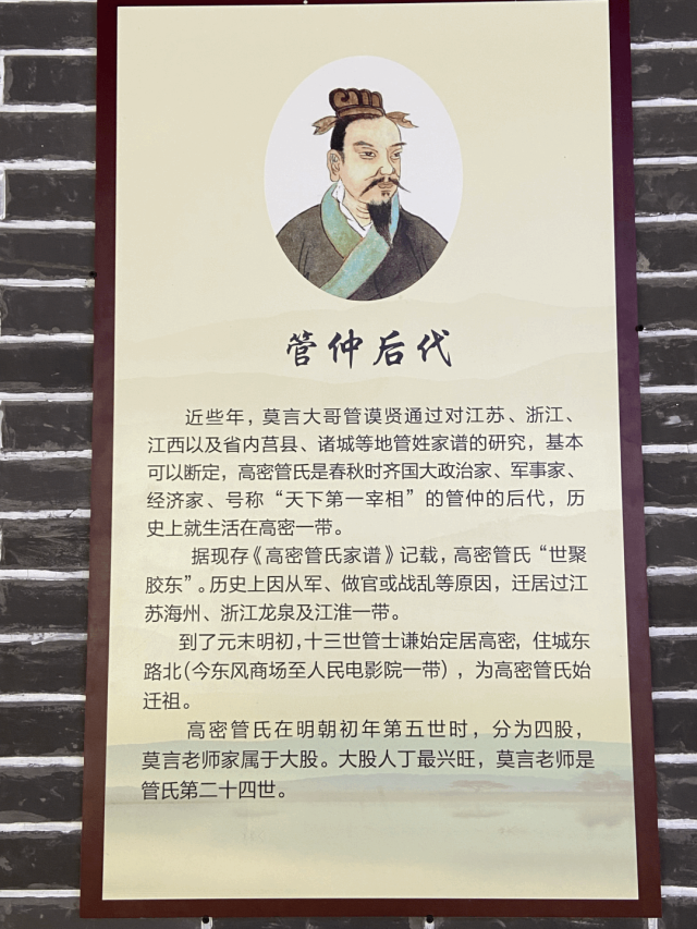 在印象馆新增的印象是,据莫言家人考证,管谟业系管仲后人。