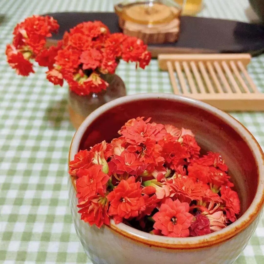 快深更半夜看到那条留言,立刻找了把剪刀把那盆长寿花一通修剪。剪下的花水养,没有合适的花瓶,直接养在了茶盂里,就是今天文章头图的样子。