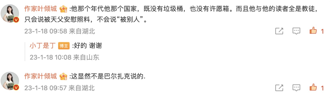 我转发之后,收到作家叶倾城的留言。