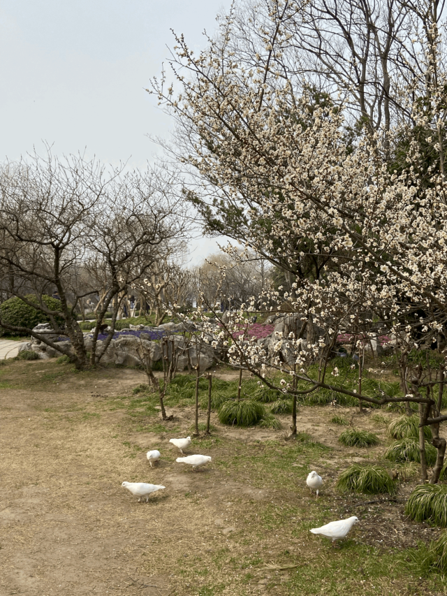 我们在乍暖还寒的时节去扬州,只有梅花开得正好。桃花啊,杏花啊,樱花啊……大名鼎鼎的扬州市花隋炀帝修运河为探看的——琼花啊啥的,要开成“烟花三月”的景象,尚需时日。