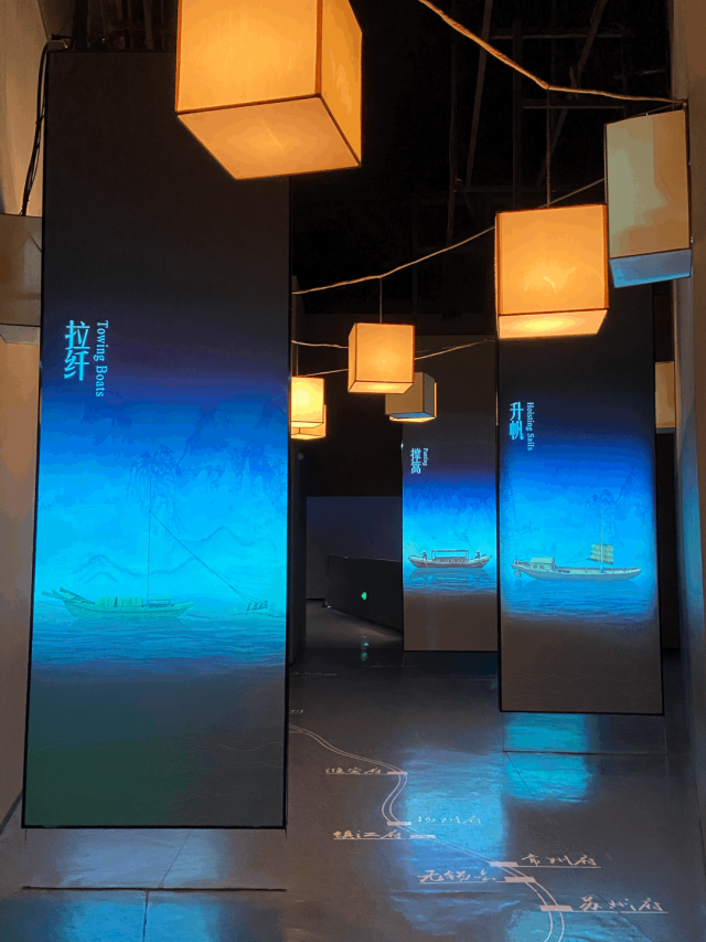 扬州博物馆乏善可陈,好像也没有什么特别的镇馆之宝。倒是大运河博物馆给了我们大大的惊喜。伙伴们又是一句:不虚此行。学历史时对大运河的起止地名,途经地点,不知填了多少次空,却完全交给了老师,这次在博物馆虚拟的船上,沿运河一路北上,历尽春夏秋冬,像历史重温,又像是南柯一梦。