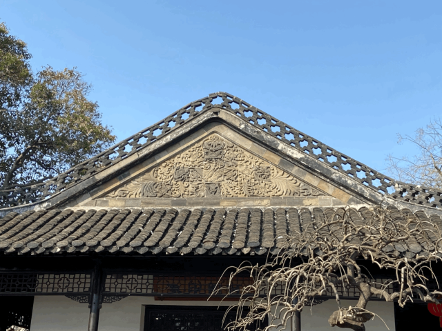 园主人喜欢牡丹,园内多种植。花开有时,牡丹花期有限,何园的匠心所在便是在房檐山脊上设计了一处永不凋零的牡丹。