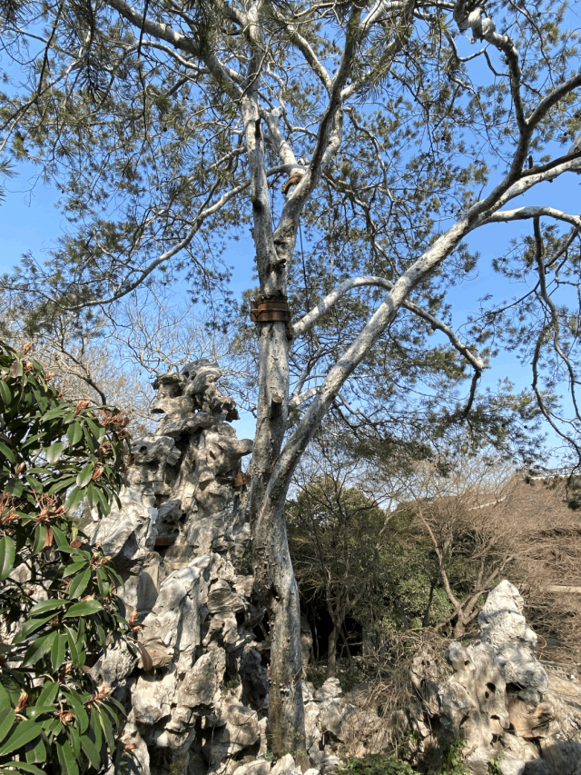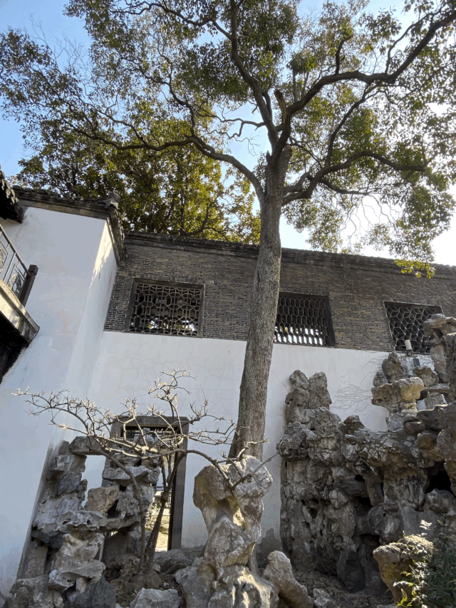 在何园,还识得了一种树。白皮松。据说扬州只有三棵白皮松,何园就独占两棵。